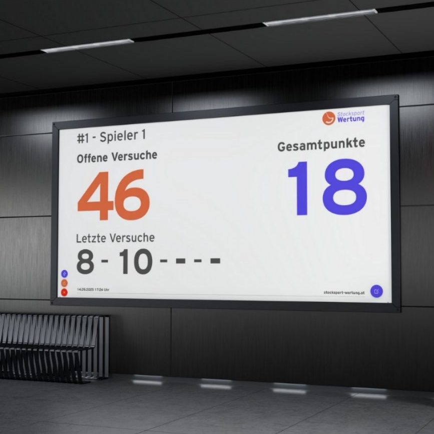 Ein Monitor kann mit ganzen Veranstaltungen oder auch mit einzelnen Spielen verknüpft werden. Das bedeutet: Mehrere Bewerbe lassen sich nun auf einer Anzeige kombinieren – perfekt für Turniere mit mehreren Bahnen oder parallelen Spielen. So habt ihr alles auf einen Blick im Überblick.
